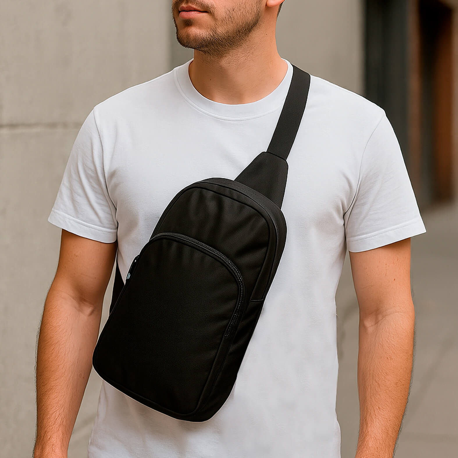Bolsa promocional de hombro color negro, ideal para campañas, eventos y posicionamiento de marca.