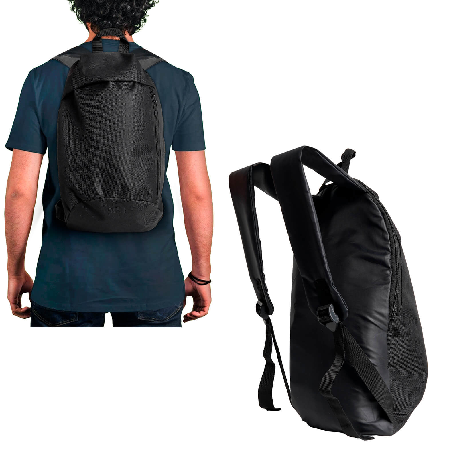 Cuenta con compartimento principal, bolsa frontal vertical, asa superior y tirantes con correas ajustables, brindando comodidad y organización en su transporte.