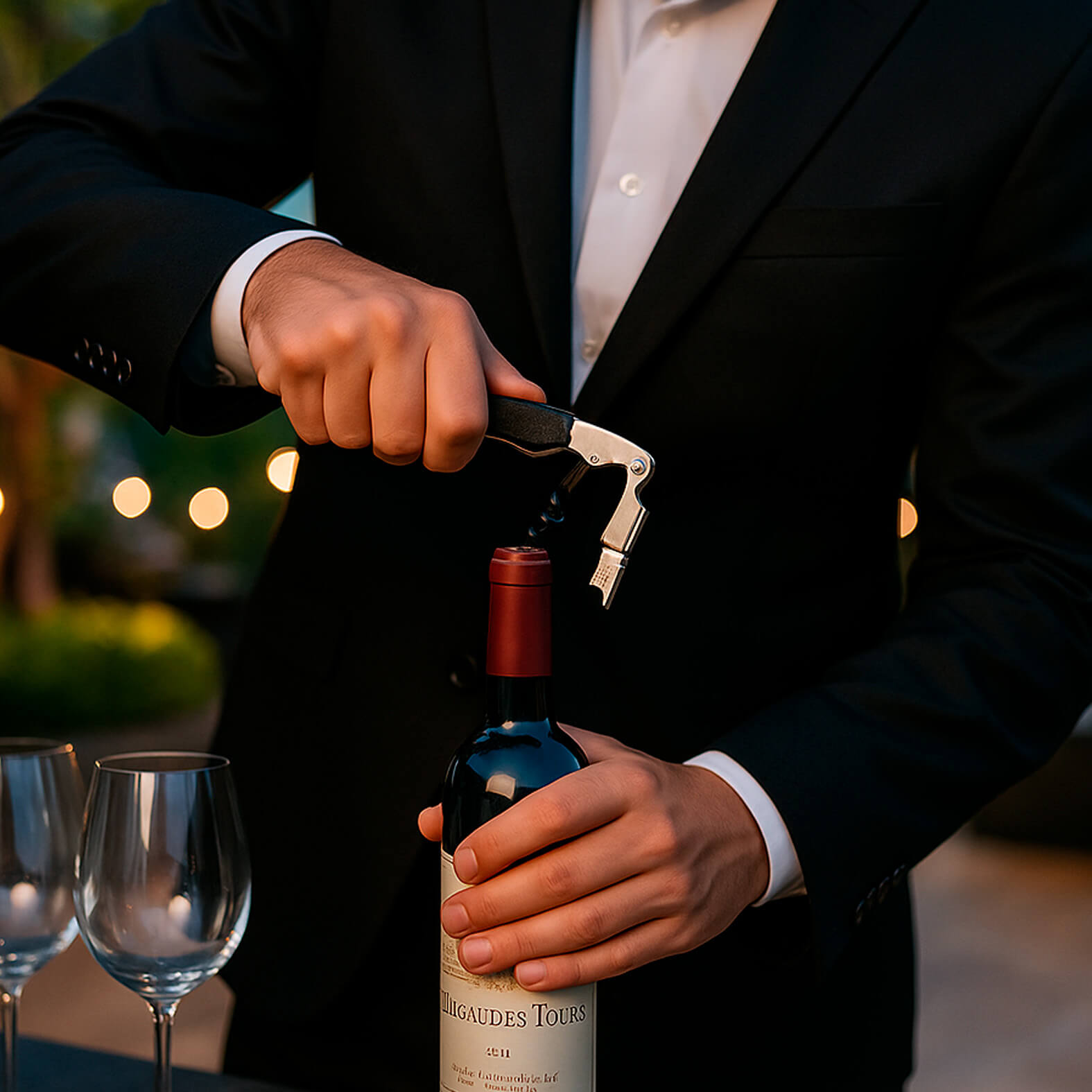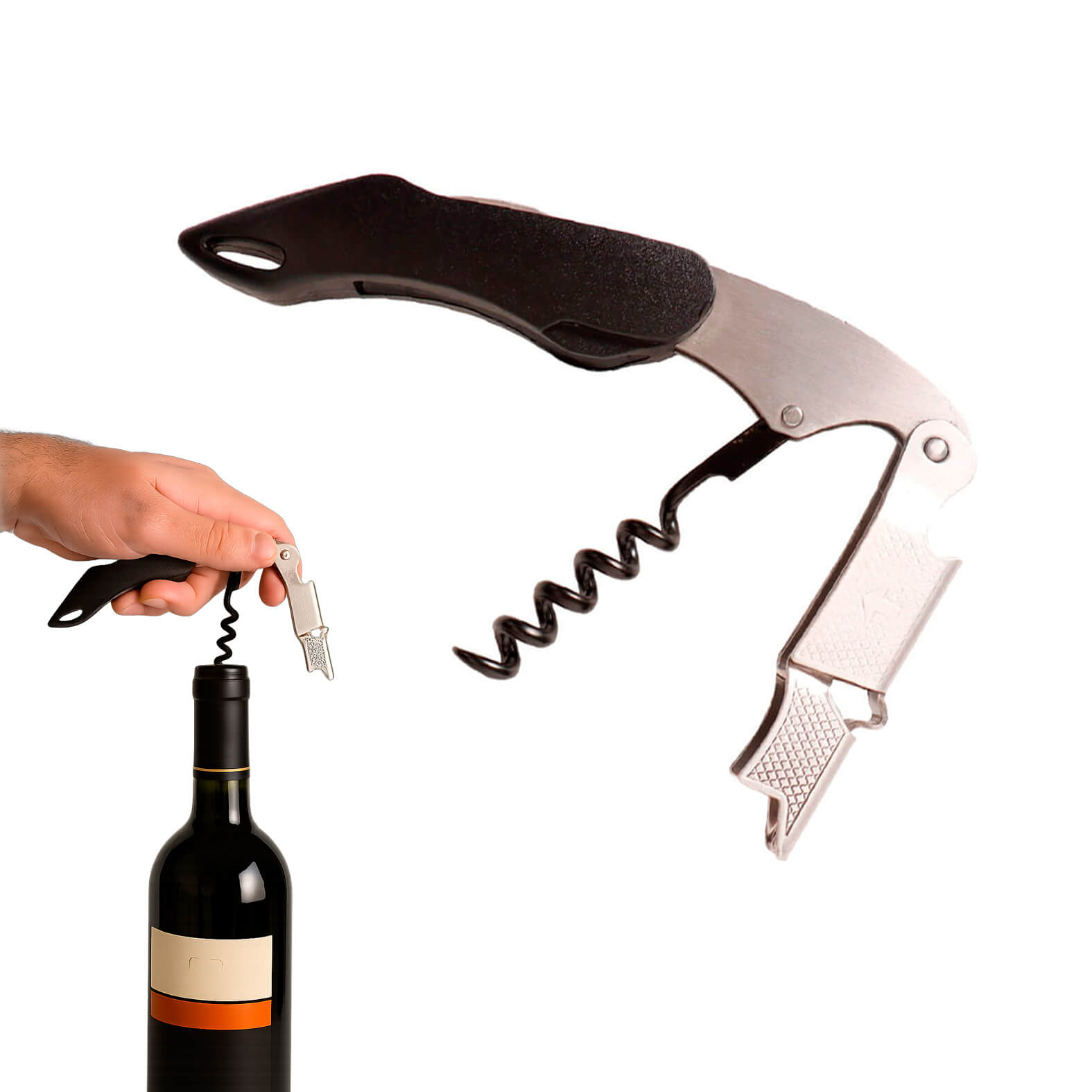 Sacacorchos de vino de 2 niveles con mango reforzado.