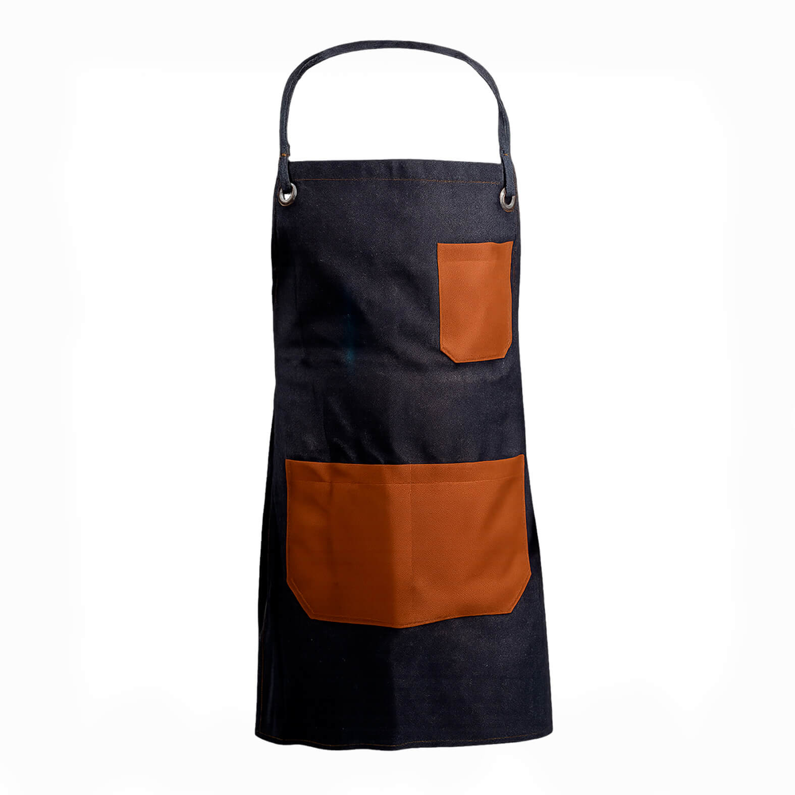 Delantal con doble bolsa en la parte inferior, una en la parte superior y correas ajustables.