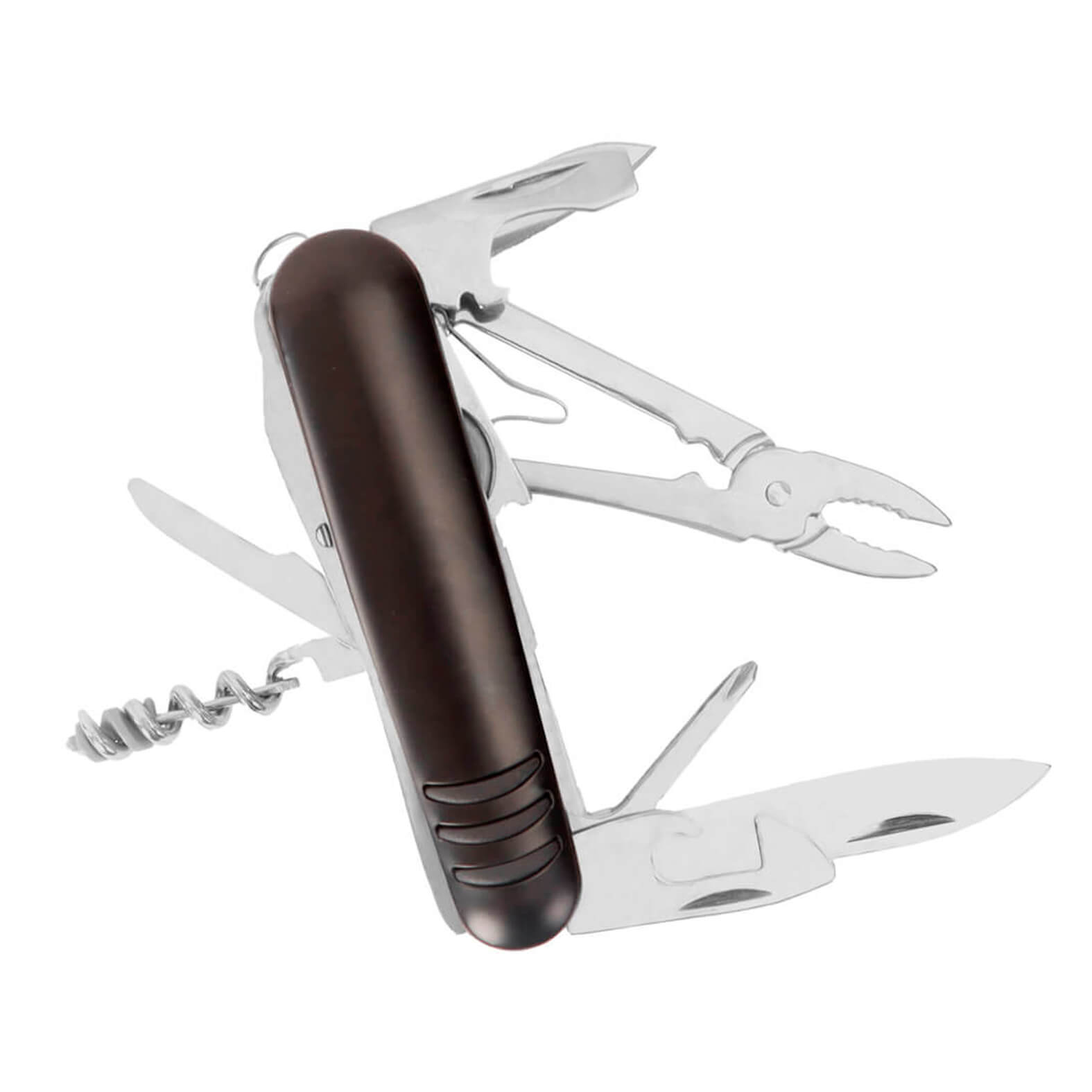 Navaja promocional metálica multiusos con 21 funciones, ideal para promoción de marca y uso práctico diario.