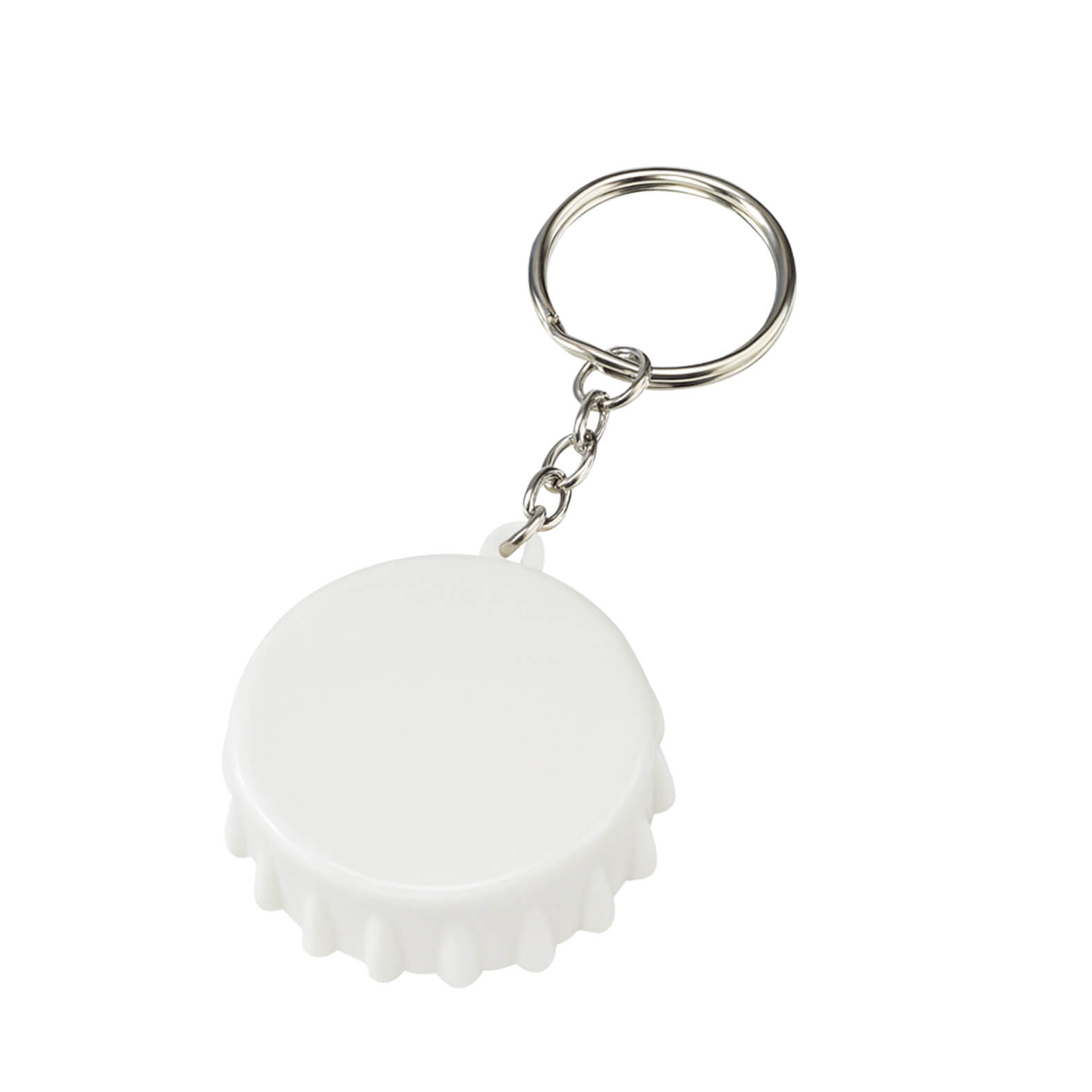 Llavero metálico con destapador, ideal para promoción y posicionamiento de marca.