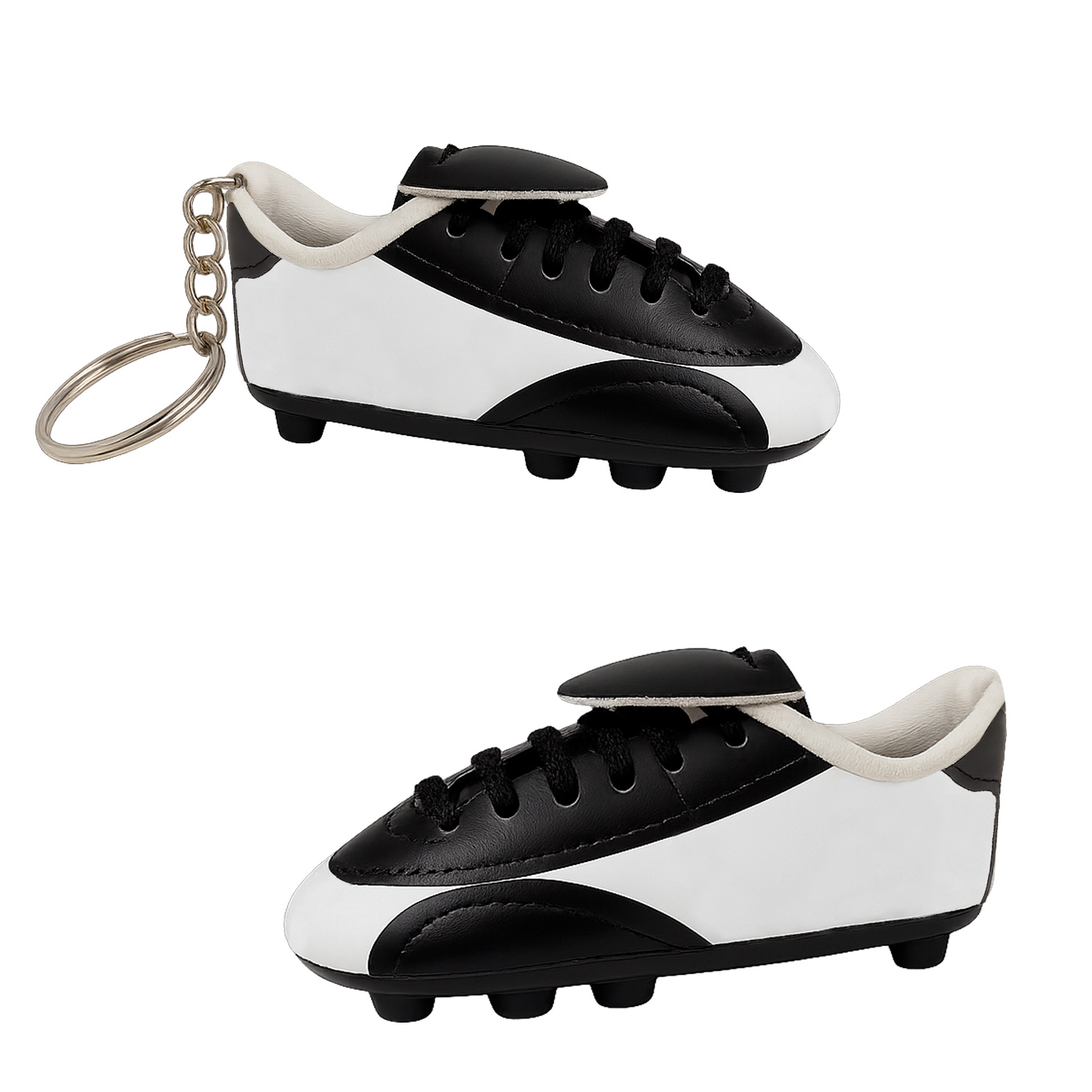 Llavero en forma de taco de fútbol de poliuretano con aro reforzado, ideal para promociones, eventos y campañas de alto alcance.