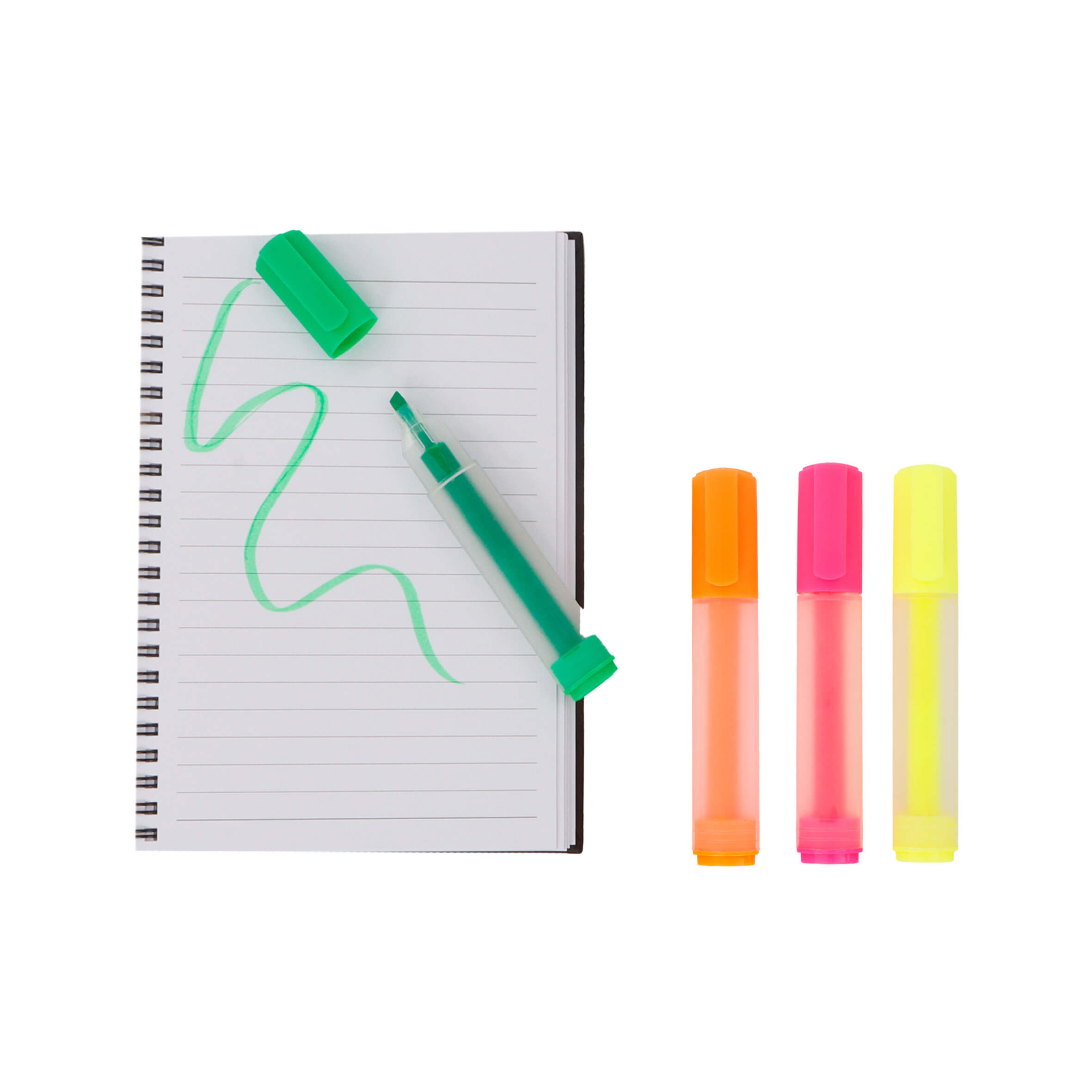 Marcatextos promocional de 4 colores, ideal para oficina, campañas y posicionamiento de marca.
