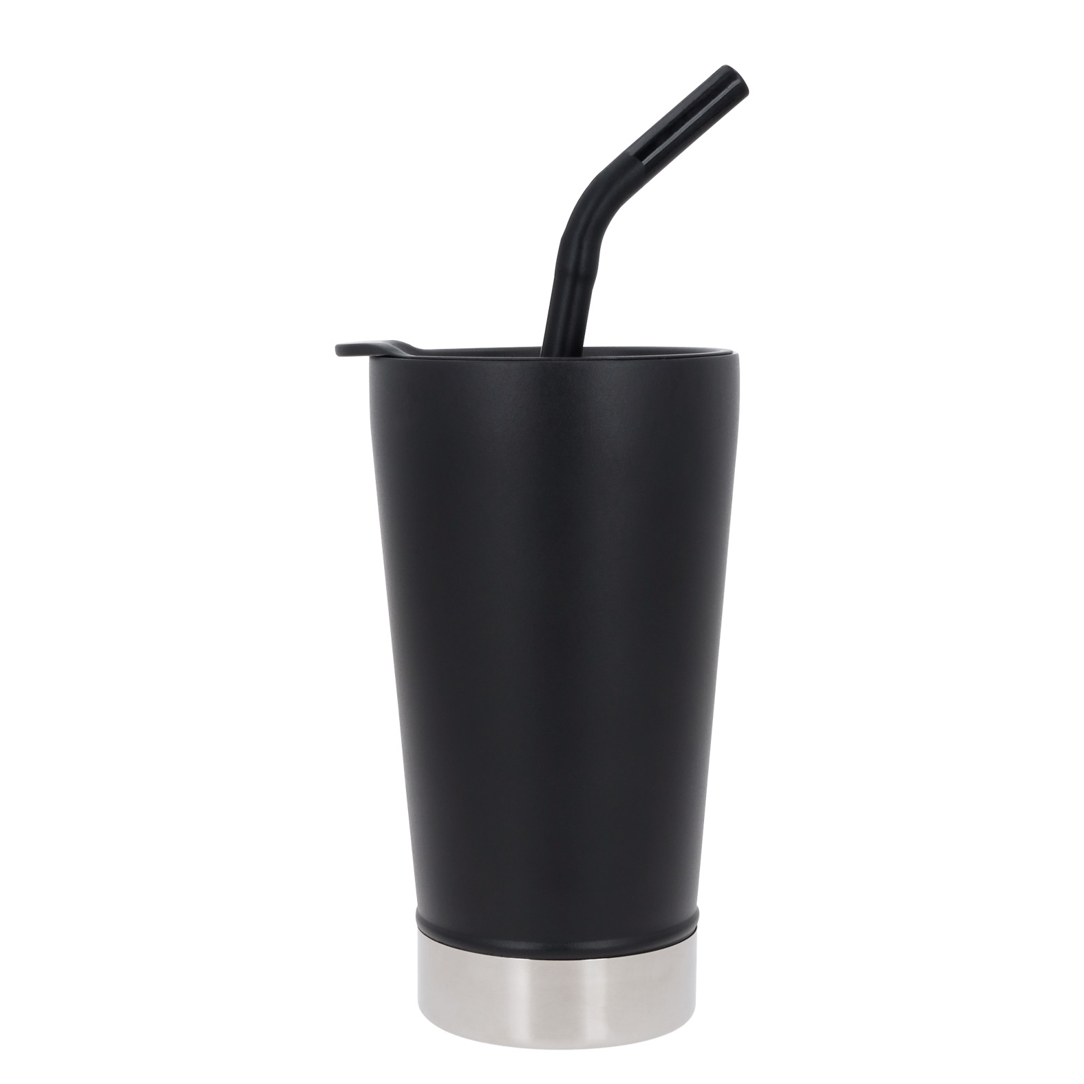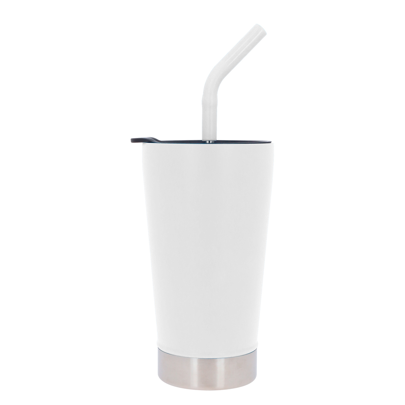 Termo con doble pared de acero inoxidable, insulado al vacío con tapa de cierre a presión y popote.
