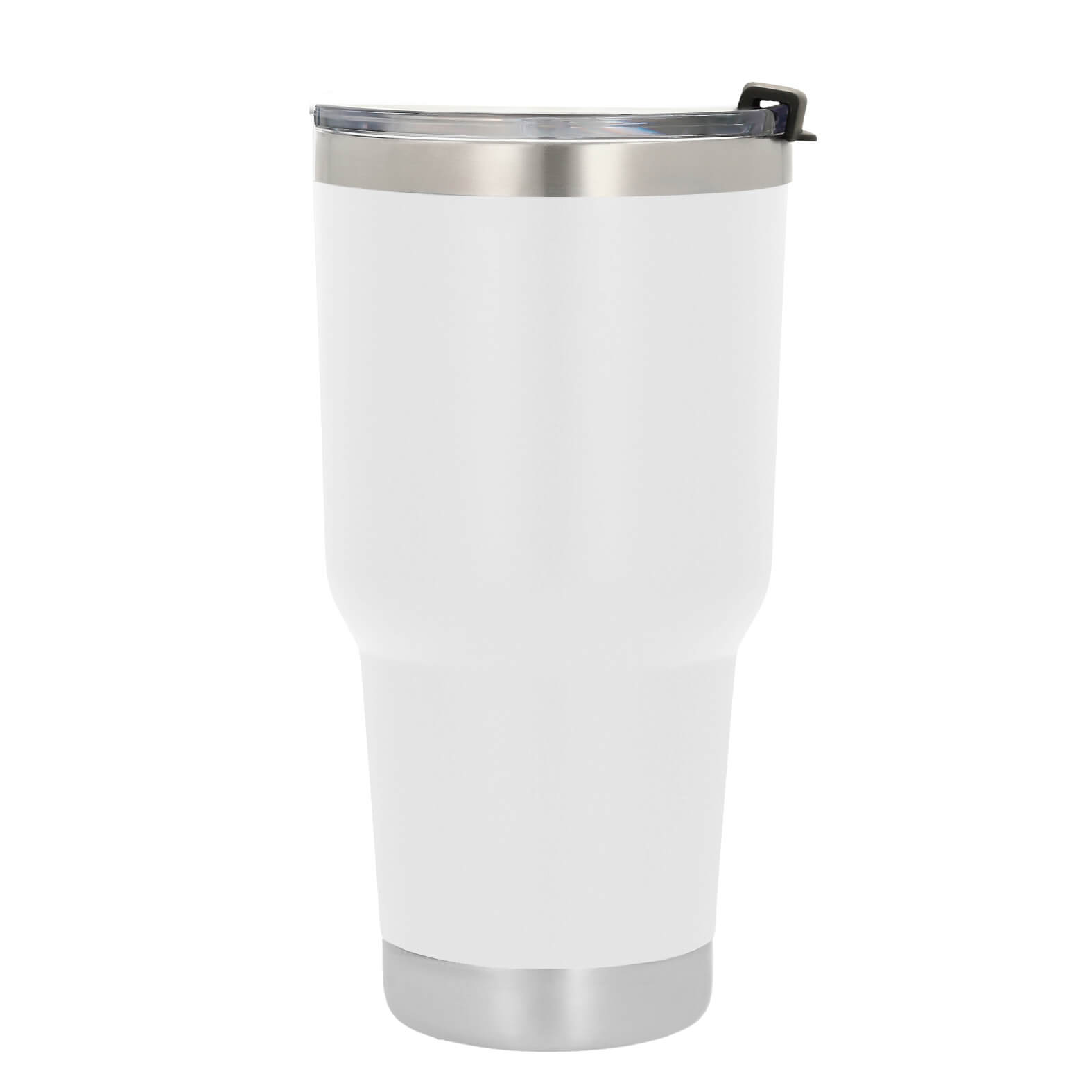 Termo con doble pared de acero inoxidable insulado al vacío con acabado rugoso. Incluye tapa transparente de cierre a presión.