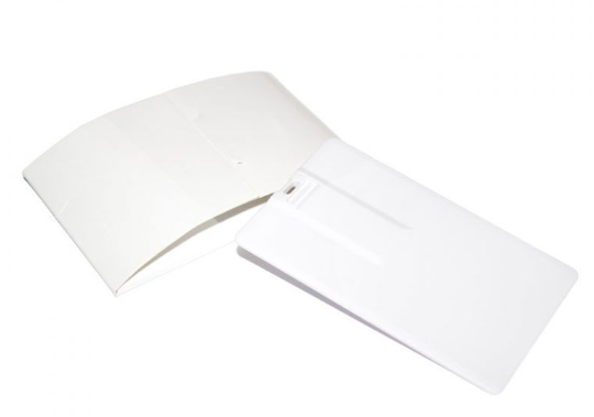 Caja de cartón color blanco para Memoria USB en forma de Tarjeta.